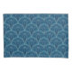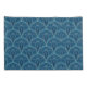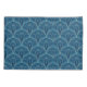 Repeating geometric Art Deco pattern with teal lines and orange dots on a dark blue background, creating a symmetrical and elegant design.