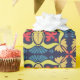 Repeating geometric pattern with red and yellow wrapping paper