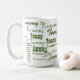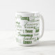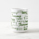 Simple and nice personalized mug. Create your own coffee-mug... it's easy and fun to do... your own name printed in green font styles all over the mug.