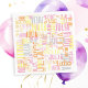 Distressed fonts of different pastel colors, creating a visually striking and balanced composition... placed all over the white and clear background. Unique idea inspired by the captivating world of graphic arts and typography... some cool and personalized napkins for her party.