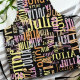 Distressed fonts of different colors, creating a visually striking and balanced composition... placed all over the black background. Unique idea inspired by the captivating world of graphic arts and typography... a cool and personalized apron for her.