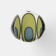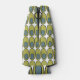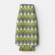 This bottle cooler has a mid-century modern design of repeating olive green ovals with gray ovals inside.