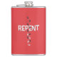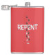 Footprints walk downward then turn upward to a cross, created from the footprints and the word repent.