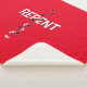 Downward footprints cross the word REPENT then turn to go upward creating a Christian cross.