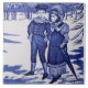 From a circa 1885 series of tiles representing the months of the year by Josiah Wedgwood & Sons. This is the February tile in blue and white and shows a boy and girl walking in the snow. A great memento for February birthdays, Valentines Day, and other occasions.