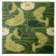 Reproduction from a tile made in Germany around 1900-1905. Jugendstil style is a type of art nouveau that foreshadowed the art deco movement. Rich, colorful and vibrant for a bold design of fishes in a pond with waterlilies, all in olive green and sage green.