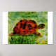 With a tortoise enjoying a stroll in the garden. This reptile is of an original glass painting on a coaster, with the paint texture still visible. © Annabel Potter
