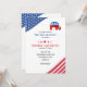 A patriotic fundraising invitation for the republican party. The white background features an upper blue corner with white stars and a lower corner with red and white stripes. It also features the republican elephant icon. (<a href="https://www.freepik.com/free-photos-vectors/design">Design vector created by freepik - www.freepik.com</a>). (<a href="https://www.freepik.com/free-photos-vectors/celebration">Celebration vector created by ibrandify - www.freepik.com</a>). <br/><br/>The card is easy to customize with your wording, font, font color, paper shape options and choice of six paper types.<br/><br/>Not exactly what you're looking for? All our products can be custom designed to meet your needs at no extra charge.<br/><br/>Simply contact us at askcottonlamb@gmail.com.<br/><br/>Coordinating products available: Just ask us!"