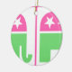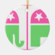 Lightweight, smooth, pure white ornament with nice sheen. Perfect size to be seen from across the room ... and to attract closer inspection! Price was great for ordering enough for the whole family! Clear, bold black design just as requested. Matches the order exactly. Just so nice!