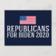 Republicans for Biden Postcard. Republican party members that will vote for Joe Biden in the 2020 presidential election. Conservative American flag for patriots against Donald Trump for president.