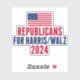 Republicans for Harris Walz laptop sticker with the American flag in red, white, and blue. Conservatives voting for Kamala Harris and Tim Walz for president and vice president in the 2024 election.