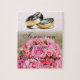Puzzle of marriage proposal, with the text “You would make the honor me marry with me” with branch of roses of pink color and alliances on bottom tone pie. An unforgettable surprise!