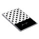 A chic design, always in style, featuring black polka dots over a white background with a custom monogram that you can edit with your name or other desired text. A great choice for home, office or back to school.