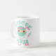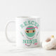 Mug with funny nurse design says RESCUE NINJA RN with ninja nurse in scrubs with pink headband, syringes and stethoscope. Great gift during National Nurse's Week for an RN registered nurse. PinkInkArt original!