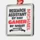 This custom ornament featuring the quote "Research Assistant by Day Gamer by Night" is perfect for any research assistant that loves playing video games.