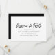 Modern save the date card featuring the words, "reserva la fecha" in a brush script handwriting font and three lines of text for your details. The backside is a solid black with one line of text in white for your wedding website or other additional info. The backside may be changed to any color you wish. A simple yet elegant design with a minimalist style.