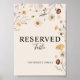 Reserved sign are characterized by a boho style with floral artwork and neutral earthy and beige colors.