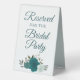 Reserved for the Bridal Party Elegant Teal Roses Table Tent