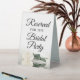 This simple tabletop sign will let your wedding guests know which areas are reserved for the bridal party. The classic timeless design features elegant script lettering and a single long stemmed ivory, white, or cream colored rose lying on its side mirrored in a pool of water.
