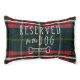 Designate your dog's spot with their very own personalized "Reserved for the dog" pillow pet bed. The design features a dark red and green plaid pattern with a stylish typography design combination of serif and script typography with a simple outlined of a dog bone and personalized with your dog's name. All illustrations are hand-drawn original artwork by Moodthology.