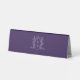 Reserved table sign in a deep rich purple, silver and white. Let your guests know where the bride and groom are sitting. Personalize with your own words and names and add your own monogram initials in the monogram crown design on the reverse. Other matching items are available. Original hand drawn crown and vines heraldry style monogram drawing and design by Sarah Trett for www.mylittleedenweddings.com