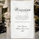 Honor those who are forever in your heart with this “In Loving Memory” wedding banner. Thoughtfully designed with soft calligraphy and a touching quote — “We know you'd be here today if heaven wasn't so far away” — this banner creates a quiet space of remembrance on your special day.