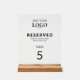 This transparent reserved seating sign, featuring your company logo and a clear table number, offers a polished, branded touch to any event or venue. It is ideal for restaurants and cafés reserving special tables for guests, hotels hosting corporate events with designated VIP seating, corporate retreats setting aside spaces for team meetings or client luncheons, or wedding receptions marking spaces for honored family members.