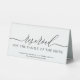 This table tent sign is the perfect size for our tables and easy to read. I also like the material it is made with and no worries about it falling or sliding. Just perfect! Everything about this card is perfect. I like that it says what we want on the front and on the back we were able to personalize a message for our guests.
