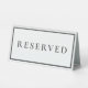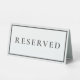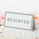 A simple reserved sign for using on tables at banquets, receptions, business functions, weddings or other events, this simple sign has the word "RESERVED" on the front and back of the sign framed by a matching rectangular border. The text may be personalized with other wording if desired.