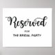Reserved table/chair wedding sign inmodern calligraphy design.