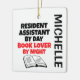 This ornament featuring the quote "Resident Assistant by Day Book Lover by Night" is perfect for any resident assistant that loves reading.