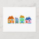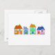 Colourful cartoon illustration of a small street of houses in different shapes and sizes and colours. Image available on various gifts and products.