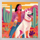 An illustration of a powerful Mexican-American woman in a cactus field with a big, fluffy white rescue dog. The dog is her best friend and companion. The bold colors represent joy, strength, and resilience. She is holding a tequila bottle with tequila distilled from the field she is existing in. She dances and celebrates life. She feels joyful and free. She is owning her resilience and power. Customize any product with Resilience, Power, and Companionship: A Portrait design. Your space should reflect who you are and what you care about. Adding a pop of color to your walls is an easy way to find joy and celebrate culture.
