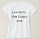 Love Unites. Hate Divides. Wear your Resistance to Hate, Fear, Racism, Sexism, Misogyny, Bigotry, Homophobia, Prejudice, Discrimination, Ignorance and Religious Intolerance. We are one USA. United We Stand. Divided We Fall. Let's Love One Another. We are much Stronger Together.