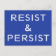 Tell your political representatives what you want them to fight for on a postcard featuring the words "Resist & Persist" in bold white text on a blue background.