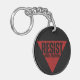 Resist word with inverted red triangle resistance keychain