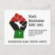 BLACK HISTORY MONTH Resistance Postcard with Christian Bible verse in Pan African colors of red, black and green, with a yellow drop shadow against a plain white background. The top heading says RESISTANCE which is the 2023 theme for Black History Month. The CUSTOMIZABLE TEXT is based on Bible verse from 1 Peter 5:9. You can replace this text with your name or with your own inspirational quote. This Pan African Black History Month Postcard would make an ideal gift for Black History Month and other cultural events, and throughout the year whenever Black independence and African American Caribbean cultural pride are celebrated. Choose from a wide selection of Black History and cultural designs on clothing, home decor, cards and gifts, original designs by Berean Designs. Also in black.