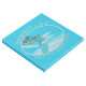 A digital painting of a sea turtle swimming in blue water, heading down to the soft sand. The artwork is in an oval shape that has a green border. At the top in green is, "Respect Life". Below the art in green is, "Keep the Ocean Clean". Image Copyright ©2024 Kimberly J Tilley.
