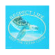 A digital painting of a sea turtle swimming in blue water, heading down to the soft sand. The artwork is in an oval shape that has a green border. At the top in green is, "Respect Life". Below the art in green is, "Keep the Ocean Clean". Image Copyright ©2024 Kimberly J Tilley.