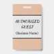 This classy badge design features the message "AUTHORISED GUEST", and a customizable company name or other custom message. A badge like this could perhaps be used to indicate that a person is a known and authorized guest or visitor at a business or workplace. [~Z0000307]