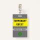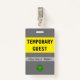 This respectable badge design features the message "TEMPORARY GUEST", and a customizable company name or other custom message. It also features a customizable business or organization logo. A badge like this could perhaps be used to indicate that a person is a known and authorized guest or visitor at a business or workplace. [~Z0000307]