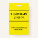 This elegant badge design features the message "TEMPORARY VISITOR", and a customizable company name or other custom message. A badge like this could be used to indicate that a visitor or guest at a workplace is allowed to be there. [~Z0000307]