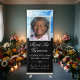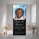 Rest in heaven personalized memorial service retractable sign with a photo, name, the years, and a custom heartfelt message at the bottom. Design with a sky background with butterflies. Change the font or colors of this funeral memorial keepsake by clicking the button to edit the design.