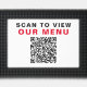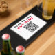 Modern customizable bar mat for your restaurant, cafe, bar, coffee house, etc., with your QR code for customers to scan to view your contactless menu. "Scan To View Our Menu" is in bold black and red typography (you can change the background and text colors by editing in the design tool).