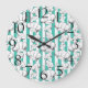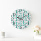 Trendy wall clock printed with traditional white toque chef hats on teal blue stripes. Perfect for bakeries, restaurant kitchens and for your home