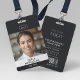 This employee id badge provides a sophisticated identification solution for hospitality management and service professionals. The minimalist design features a high resolution photo and custom business logo, set against a sleek black background for a modern professional appearance. This badge ensures that managers and staff are recognizable during busy service hours or at high profile events.