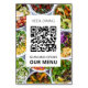 This is a simple white "scan and order our menu" table sign with business qr code and text in black. It is used to indicate where customers can scan and place their orders. Clear message and easy to spot. A great order pickup sign for restaurants, shops, and other small businesses.