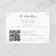 Restaurant Simple White Script Classic Reservation Business Card with QR Code. Vintage inspired elegant design featuring script fonts and vintage swirls and flourishes. This design comes together with a simple and delicate minimalist style. The collection offers other printed material you may need for your restaurant.