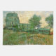 Restaurant de la Sirène at Asnières by Vincent van Gogh is a vintage fine art post impressionism architectural painting featuring an exterior view of the back of a restaurant with a grassy hill.