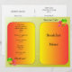Sample menu, fully customizable, Works for breakfast, lunch, dinner, take out, or whatever you need! Very simple, just type in your menu in the boxes, hit the save button, and then order. When you recieve them, just fold them in half along the dotted lines. Very Simple! Thank you for your support! If you are on a budget this is the place! The more you order, the bigger the discount. Don't forget your shirts!